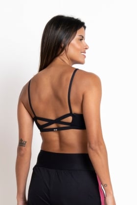 Top com bojo removível e alças finas. Costas com detalhe cruzado. Produzido com microfibra de poliamida, confere toque macio e conforto térmico.