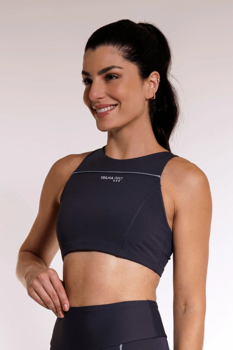 O Top Sprint foi desenvolvido para oferecer sustentação real e confiança em cada movimento. Com decote frontal alto que garante cobertura e suporte durante os treinos mais intensos, ele une proteção e estilo em um design moderno e funcional. O bojo removível permite personalizar o uso de acordo com a sua preferência, adaptando a peça para diferentes tipos de atividade e ocasião. Os detalhes em transfer refletivo Trilha Pro elevam o visual e garantem maior visibilidade em treinos noturnos ou ao ar livre, unindo segurança e sofisticação em cada detalhe. Uma peça pensada para quem exige desempenho máximo sem abrir mão do conforto e do visual.